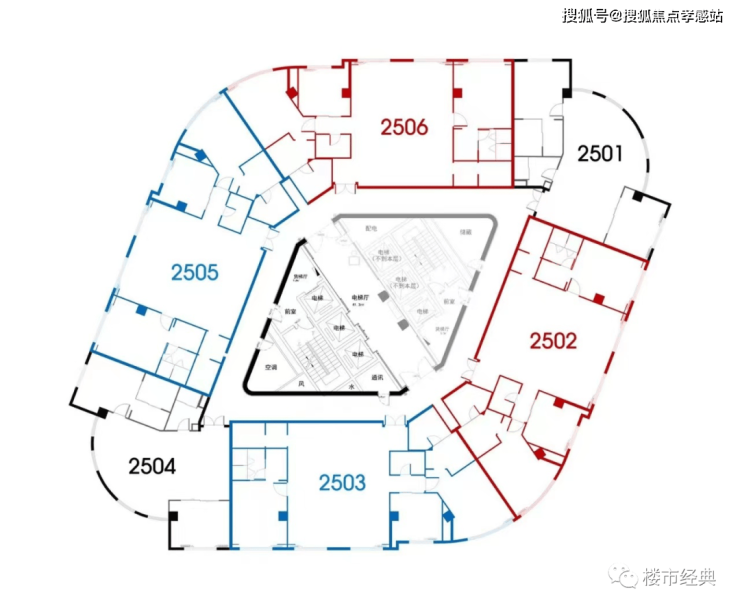 3)2505室,247.33平,总价2226万;西北,主卧正北(看金融总部办公楼群),虽然朝北,但全屋中央空调、地暖,不影响居住