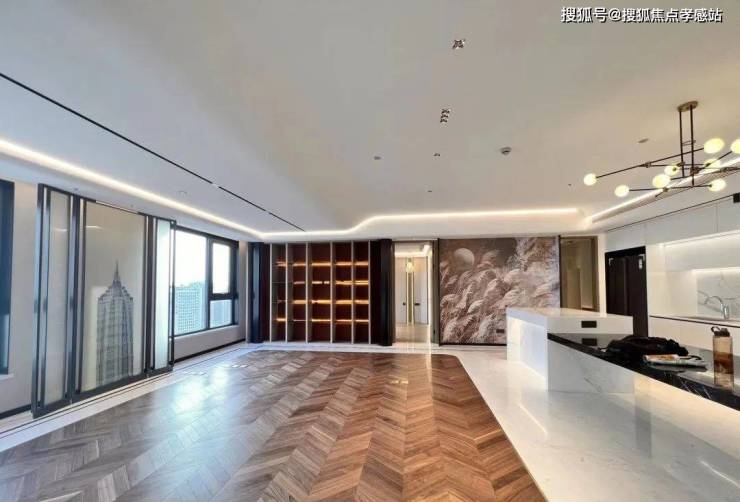 LDK(厨房、餐厅、客厅)一体化,大气通透,空间大,就餐娱乐相结合,吃饭瞰景,开放式书柜更显大气