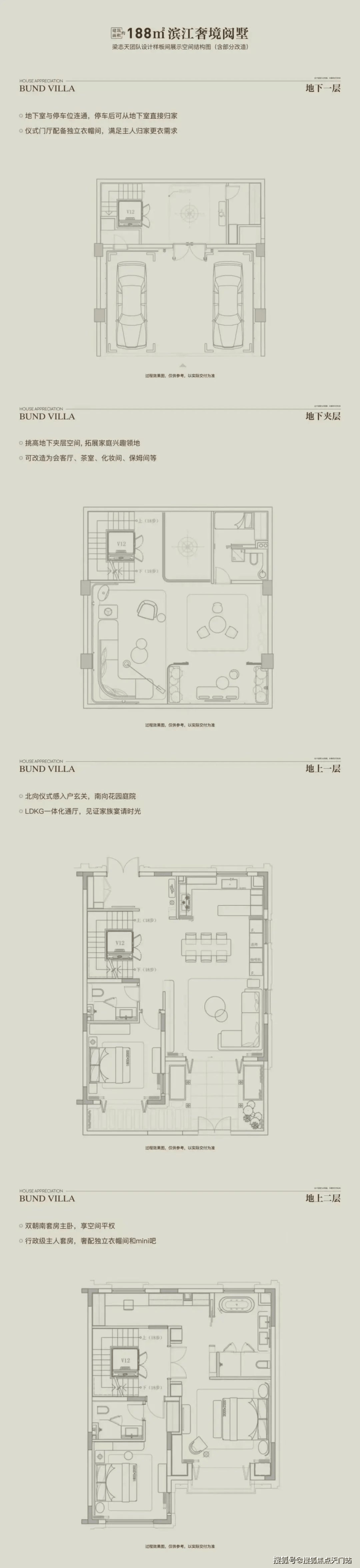 另外,项目对附赠空间进行了极致优化:地下层高下挖到6.6米,较常规的5.8米深了80公分,使得两层地下室可以获得平均3.3米的高度空间;同时,增设的阁楼层通过将檐口上移30公分的技术处理,使得最高高度能够达到3.6米,配合露台,甚至可做主卧系统使用。