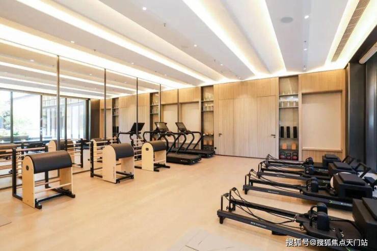 项目利用下沉式景观庭院,结合艺术花园、摩登水景等,打造了一座建面约1200㎡的高端下沉式会所,规划设有泳池、健身房、行政酒廊等场景。