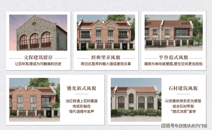 全上海第一个多元化形态风貌别墅新房, 五大经典建筑立面复刻百年风貌Art Deco神韵,包括文保建筑留存、经典里弄风貌别墅、平脊范式风貌别墅、鎏光新式风貌别墅和石材立面风貌别墅。