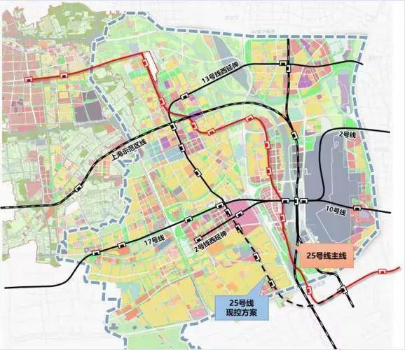 在虹桥国际中央商务区综合交通专项规划送审稿(2021-2035)中,25号线走向为纪王—徐汇,在华新设置2个站点。
