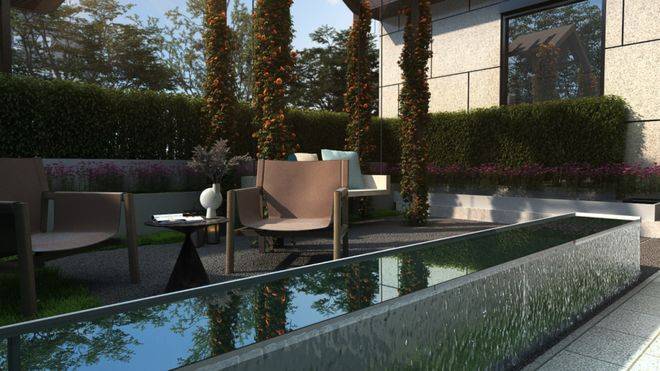 庭前绿地的面积有约40-60㎡,不管侍弄花草、晒晒太阳,抑或叠山理石,都足够了。