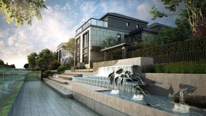 【上实·和风院】建筑外观是新中式格调,以黑色面瓦为黛顶,整体线条简洁明快。