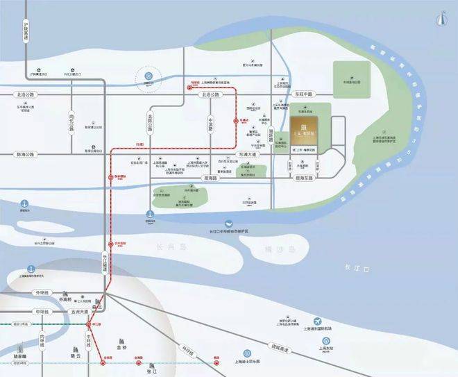 交通配套方面:申崇一线、申崇二线、轨道交通崇明线——东滩站(在建)。