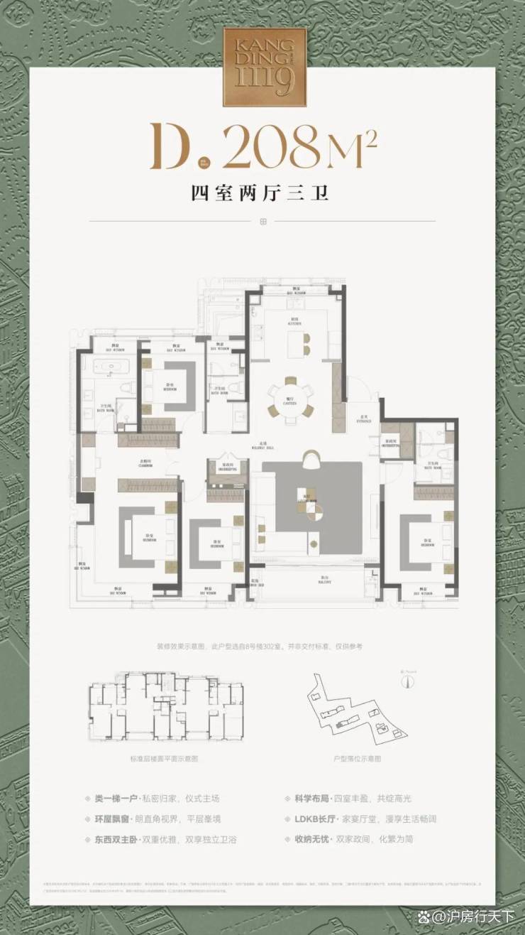 康定壹拾玖全社区采用一梯一户设计,得房率超80%,部分户型享270°环幕视野。