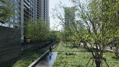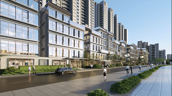 从效果图上看到,建筑的外立面是现代简约的时尚立面,都会高端住宅风格尽显。