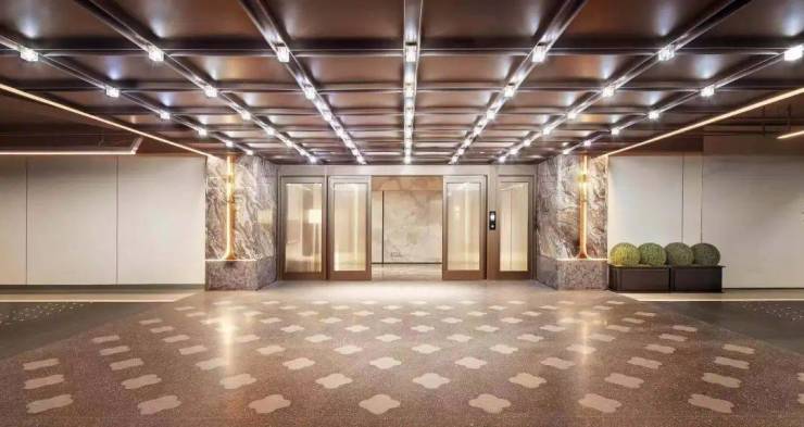 再加上香槟金型材金石嵌套设计,这一配色使建筑立面变得更加柔和,代表温和尊贵的价值取向。地下入户大堂的灵感来自于深圳安达仕酒店,在地下空间内采用东方本墨晕染透光云石点缀,视觉上加大空间的亮度和色温。