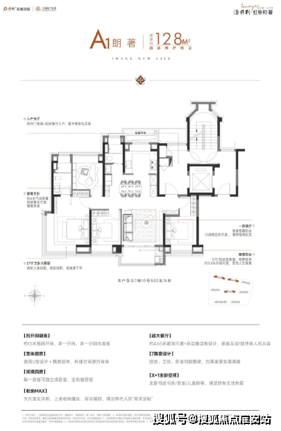 建面约128㎡宽境四房