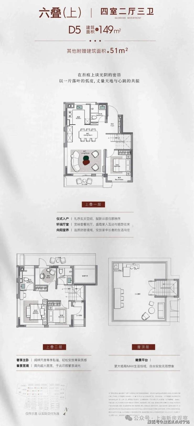 合院:建面约190㎡三室两厅三卫、约210-230㎡四室两厅三卫/四卫,附赠地下室+露台,总价预计约2000万;3层地上+地下室设计。