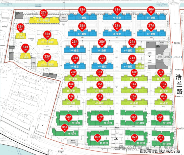 03-04地块:东至兰香湖东路,南至兰香湖北路,西至浩兰路,北至东川路,土地用途普通商品房,容积率1.01;由4幢11F高层住宅、14幢4-7F多层住宅以及若干社区配套用房组成,共计规划约342套可售住宅;