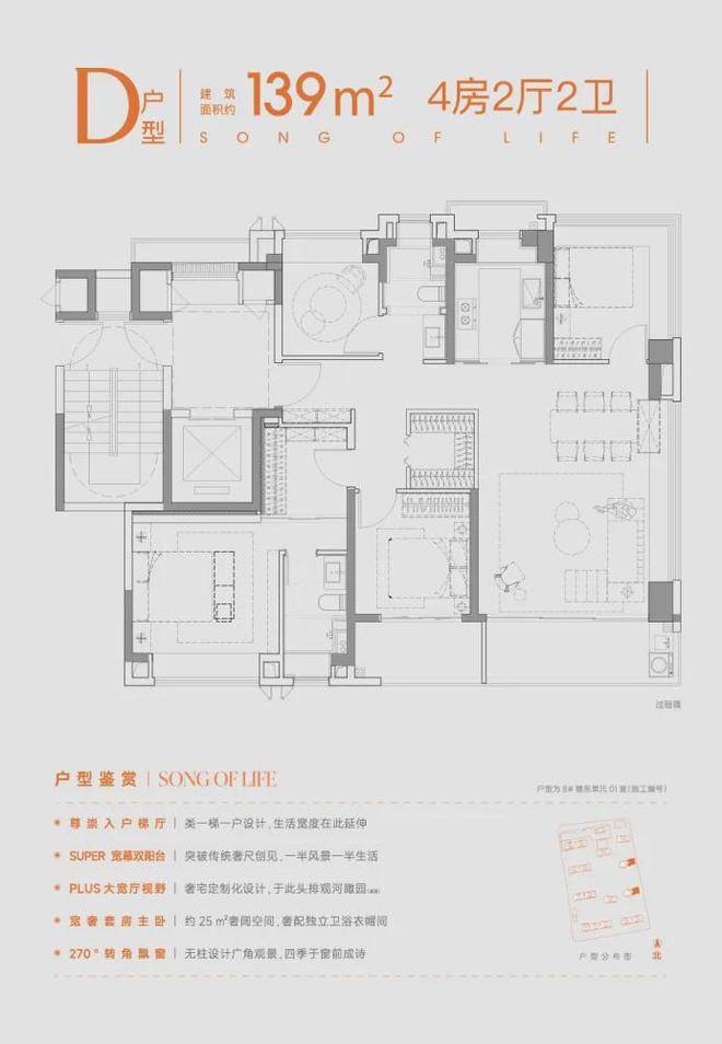 保利好房子体系精研迭代建面约91-140㎡国际精奢宅,类一梯一户设计、尊崇归家门厅、270°转角飘窗、PLUS级收纳体系、全明卫明厨布局等服务于生命舒展设计,从好房子到好生活,引领居住回归美好初心。