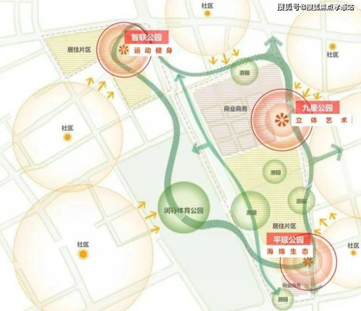 据悉,未来将建成九星片区内的三大公园,近150万方生态公园串联起一个都会生活绿轴,将承载着改善九星乃至七宝地区的作用。