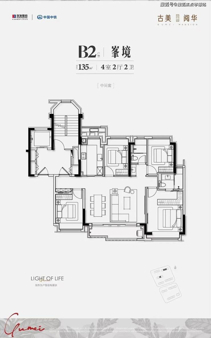 【古美阅华】四期售楼处营销中心☎☎:400-8855-420👈135㎡的四房户型的最大亮点是大横厅,超宽客餐厅大大拉伸横向的尺度,让生活更好的沐浴在阳光之中。