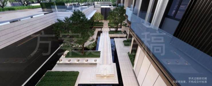 于内,可享约3900㎡隐奢园林,打造立体多重景观:下沉庭院、跌级水景、屋顶绿化等,城市与建筑浑然一体。