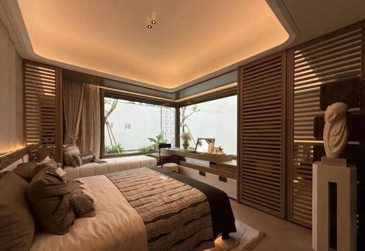 边套户型主卧为270°转角飘窗,并预留两个衣柜空间;