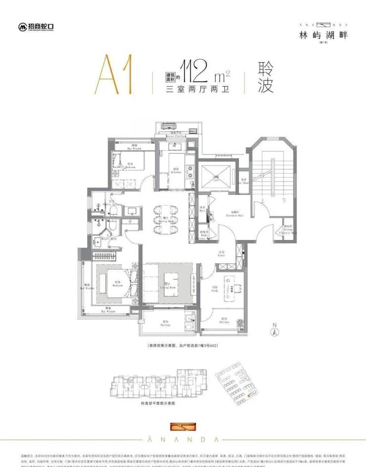 项目将推出建面约112㎡、122㎡、145㎡高层3-4房以及建面约160-165㎡叠墅,共计624套,其中112户型为一梯两户,122户型两梯两户。