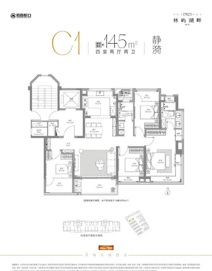 145户型分别位于10号楼和12号楼,双楼王位置,10号楼南侧为低密别墅,南向采光和视野极佳,12号楼南侧正对社区中轴线及室外水景!