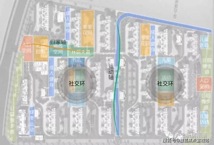 运动轴-中央康养跑道,200米南北景观中轴,形成社区活力之源;