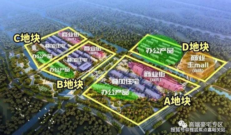 联仲都悦汇同样是低密度别墅区里的一员,背靠绿城玫瑰园,容积率低至1.0。项目贯穿了3条自然水系,分为ABCD四个地块,其中ABC为商住办综合地块,自带商业办公。