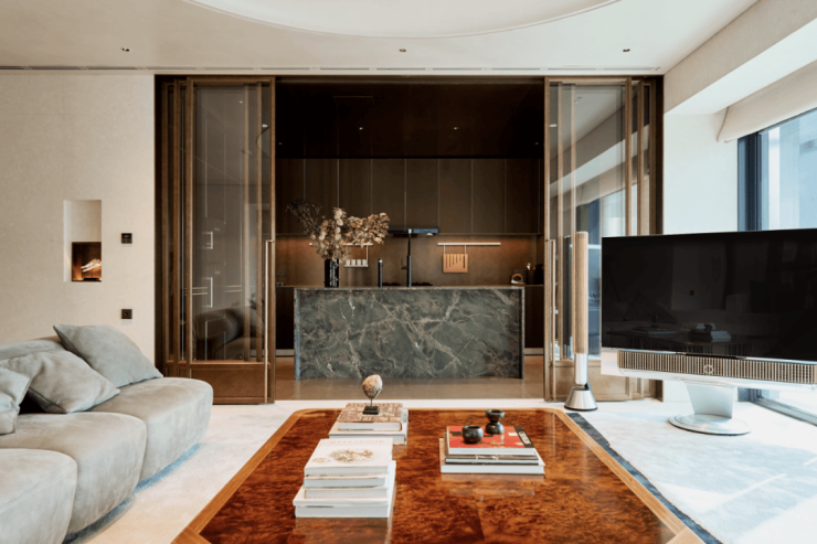 除了甄选国际一线大牌助阵,湾上样板间更从高品质生活的考量,在选材方面层层把控,材质及工艺横跨了石材、木质、皮革、金属等多个维度,认真精耕每一寸空间。