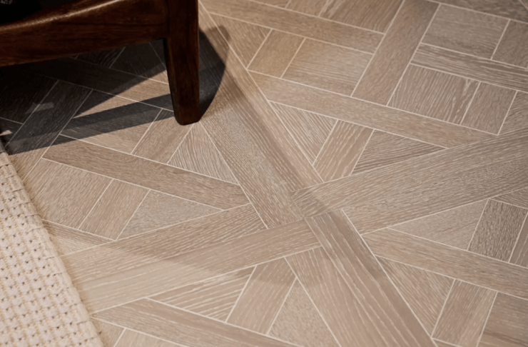 卧室地板采用拼接更加细腻的实木复合地板,且更多采用斜拼,工艺复杂,尽显精奢质感。