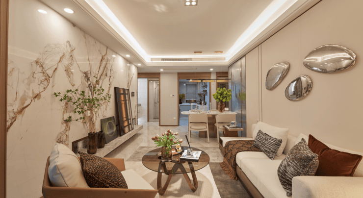 归家礼仪轴线上,一眼望去,是奢雅墙景、移动花钵、潺潺水景、精装轩敞的入户大堂……