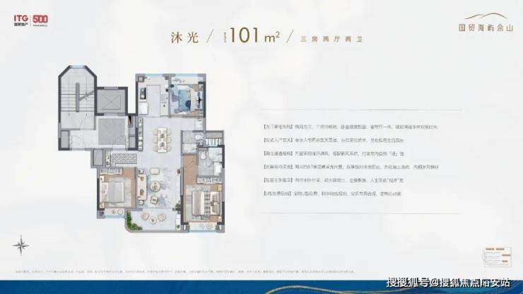 除了叠墅外,全社区仅4幢建面约101㎡沐光全景小高层,通过前瞻排布,几乎做到了户户景观无遮挡。