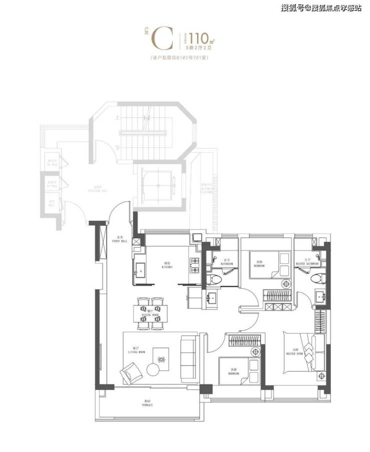 建面约108㎡3房(小高)实用且更有温度的“家庭生活中心”
