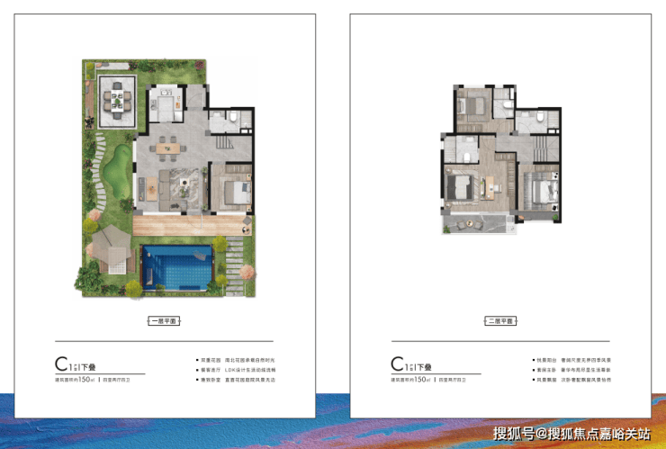 建面约150㎡3-4房 这个面积段的叠加空间更加富裕,空间打造上也更加灵动。主卧带观景阳台的设计,让四季景观尽收眼底。