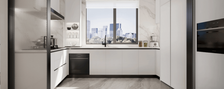 厨房方面,项目不仅使用了住建部好房子厨电样板房间同款,更是贴心的设计了集成烹饪中心(烟灶联动、制冷空调、蒸烤同烹)、集成净洗中心(水槽与洗碗机一体化),更加贴合本土的烹饪习惯: