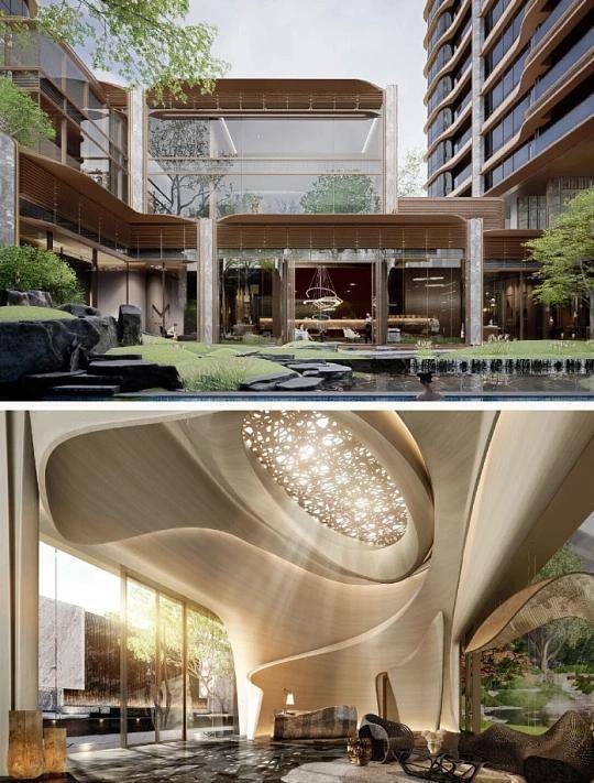 项目整体容积率仅1.59,在高层建筑常态化的上海核心区中极为稀缺。规划仅178套房源,涵盖118席建筑面积约100-120㎡的艺术私邸与60席315-430㎡的洋房别墅,确保低密度居住环境,提升私密性与舒适度。建筑设计由GOA大象操刀,灵感源自徐汇作为中国现代音乐发源地的文化基因,将大提琴的优雅曲线融入建筑立面,呈现艺术雕塑般的视觉效果。景观设计由迪东与日本植弥加藤团队联袂打造,规划六大主题园景,并陈列向京、何多苓等十余位当代艺术家的原作真迹,开创豪宅项目艺术陈列先河。