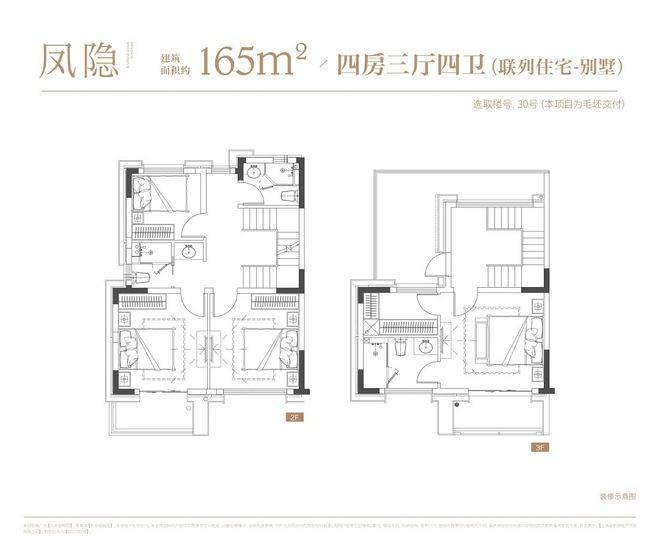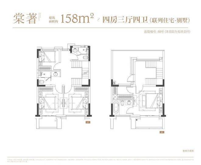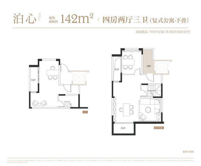 叠墅:叠墅一共四层,分为上/下叠,上叠建筑面积约139㎡,下叠建筑面积约142㎡。