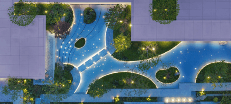 荟萃全球进口奢石、纯手工拼接的星辉屏风、千万级顶豪同款景观树——名贵三河黑松、定制化星光幕帘等场景,引璀璨星河入园,与滨江景致遥相呼应。