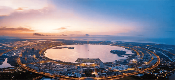 约2公里金融湾,规划约360万方融合环湖总部办公、高品质住宅、高端商业体、高品质教育等多元业态的城市综合体,是新片区跨境金融总部集聚、金融业务创新的承载区,云集大批头部金融机构,将对标全球顶级金融中心,成为中国金融开放与创新发展的前沿高地。