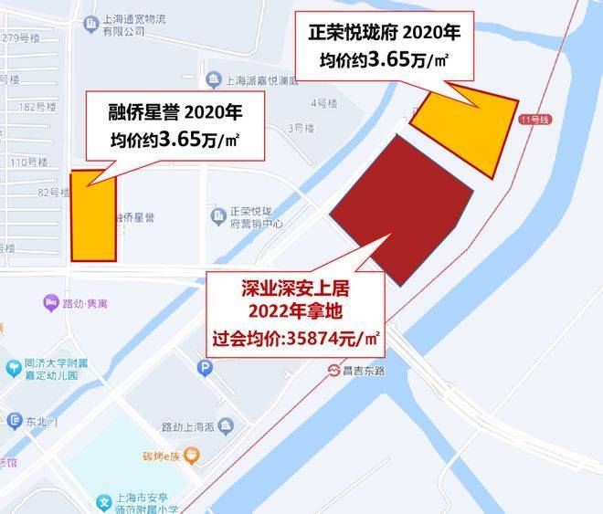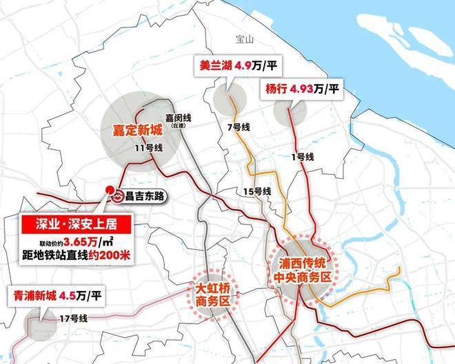 地铁11号线昌吉东路站直线仅约200米,2站可达嘉定新城,9站虹桥火车站,且同区域仅约1公里的深业安亭项目联动价已达4.2万/㎡。