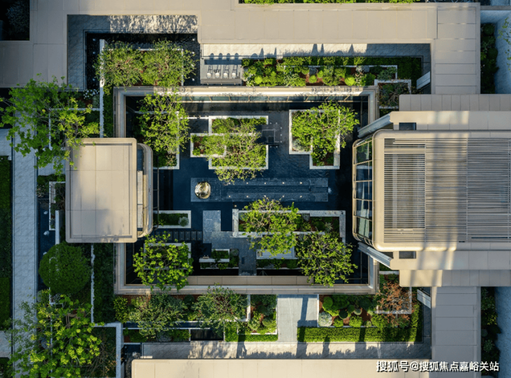 穿过会客厅即是水森庭院。中轴水景与6株元宝枫,矗立在这片由黑金沙铺成,范思哲黑与潘多拉奢石点缀于此的水院中。
