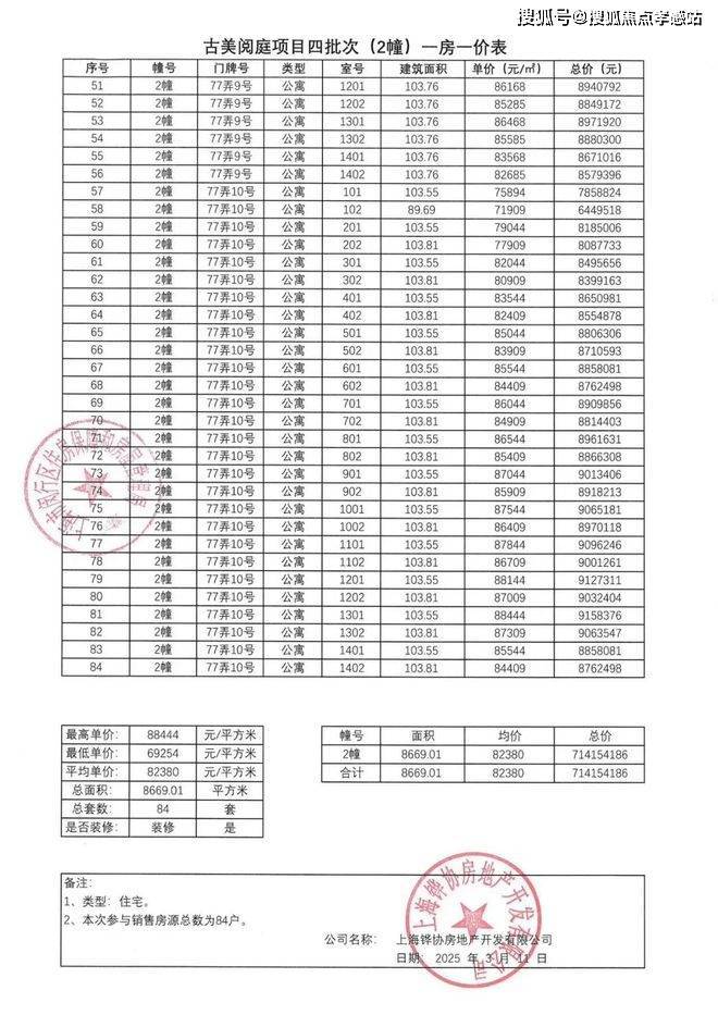 过会均价82380元/m²,总价621万