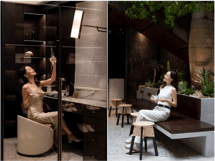 女性友好健身房配备专属器械、补妆间和心理理疗室,未来瑜伽课、塑形训练可随时预约,美学与实用融合。