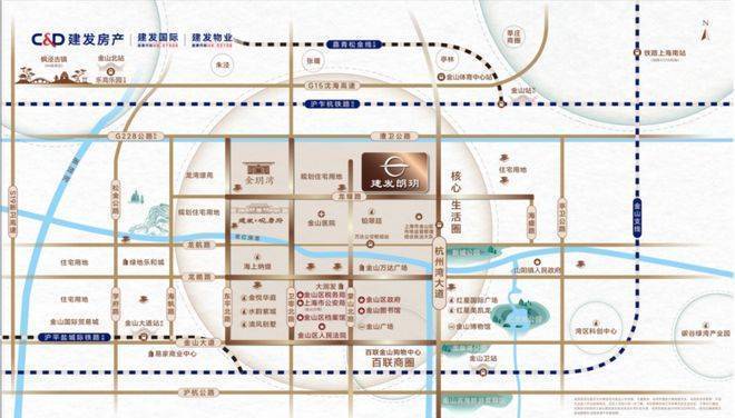 项目所在位置,近距金山铁路,快速直达上海南站,无缝换乘1/3/15号线,畅达全城,快捷直上沈海高速,直达大虹桥,日常丰盛从容,出行便利通畅,现代、繁华、诗意的生活盛宴,正于此拉开华丽大幕!