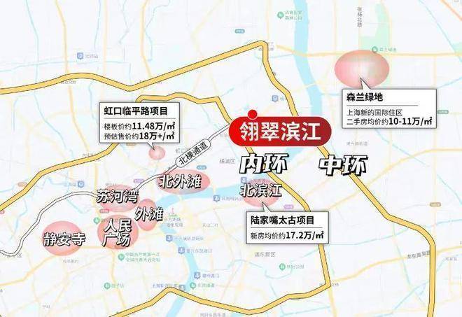 再加上内环和五条过江隧道(包括桥)的加持,像东外滩核心区、北外滩核心区、陆家嘴、世纪公园、南京西路、外滩等都是业主未来的生活圈。