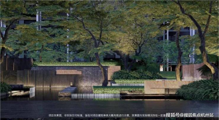 主要通过景观入户景墙结合点景乔木,彰显业主归家仪式感和尊贵感。