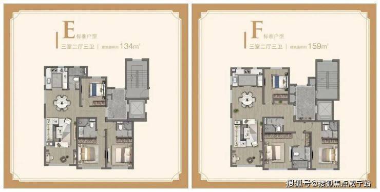 建面约134-160㎡大三房,通过侧面的景观窗,一览百万方中央公园的美景,三个卫生间的配置也让隐私感更强。