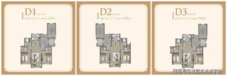建面约105㎡3房,3个户型都做到了“双南套房”, 三开间朝南+飞机户型+LDKG一体化,空间感十足。