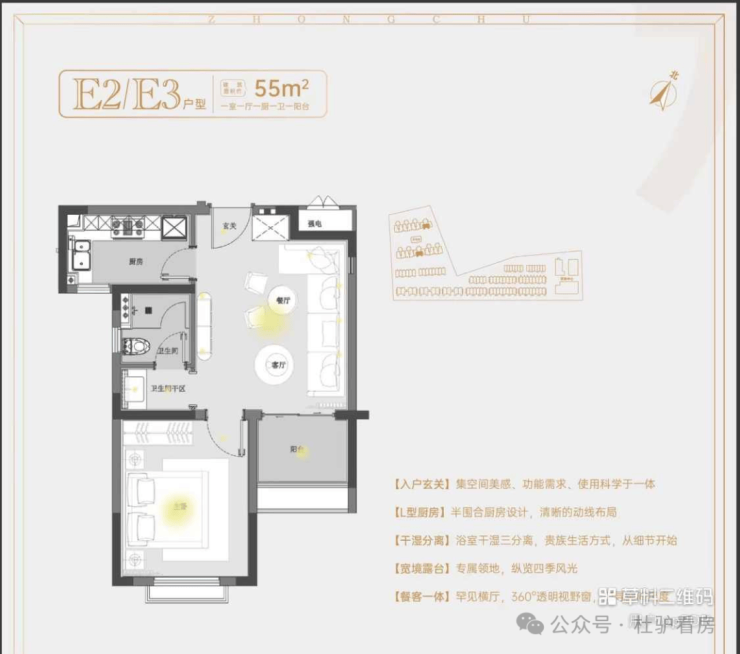 洋房 面积:55、56㎡ 1房/1厅/1卫,