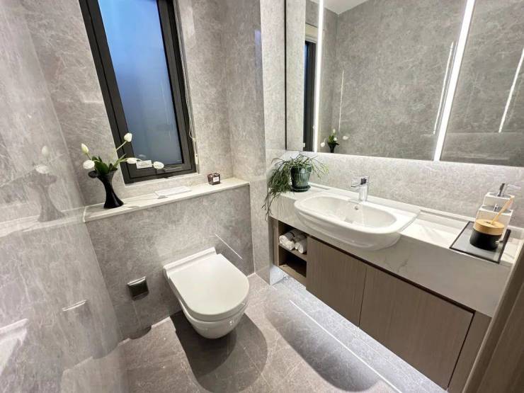 仔细看下,可以发现是在本身就很极致的三房户型中,又拿出一块空间,多设计了1个马桶+盥洗池出来