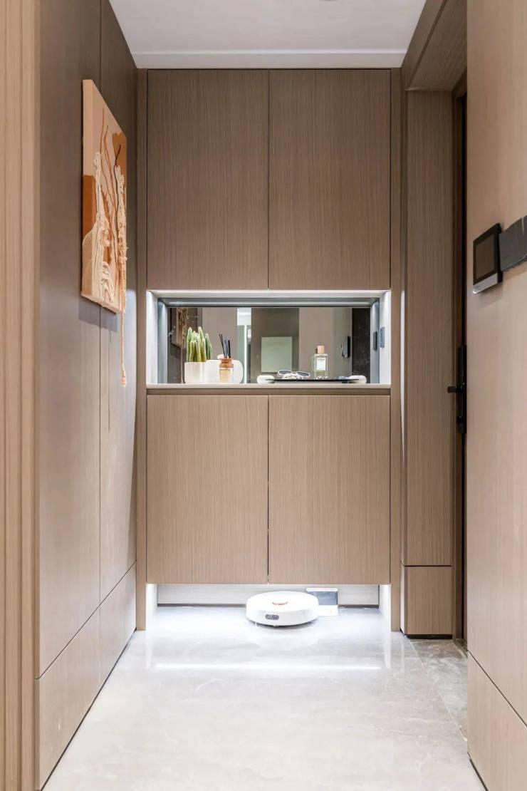 进门后,玄关处的收纳柜直接做成了交付标准