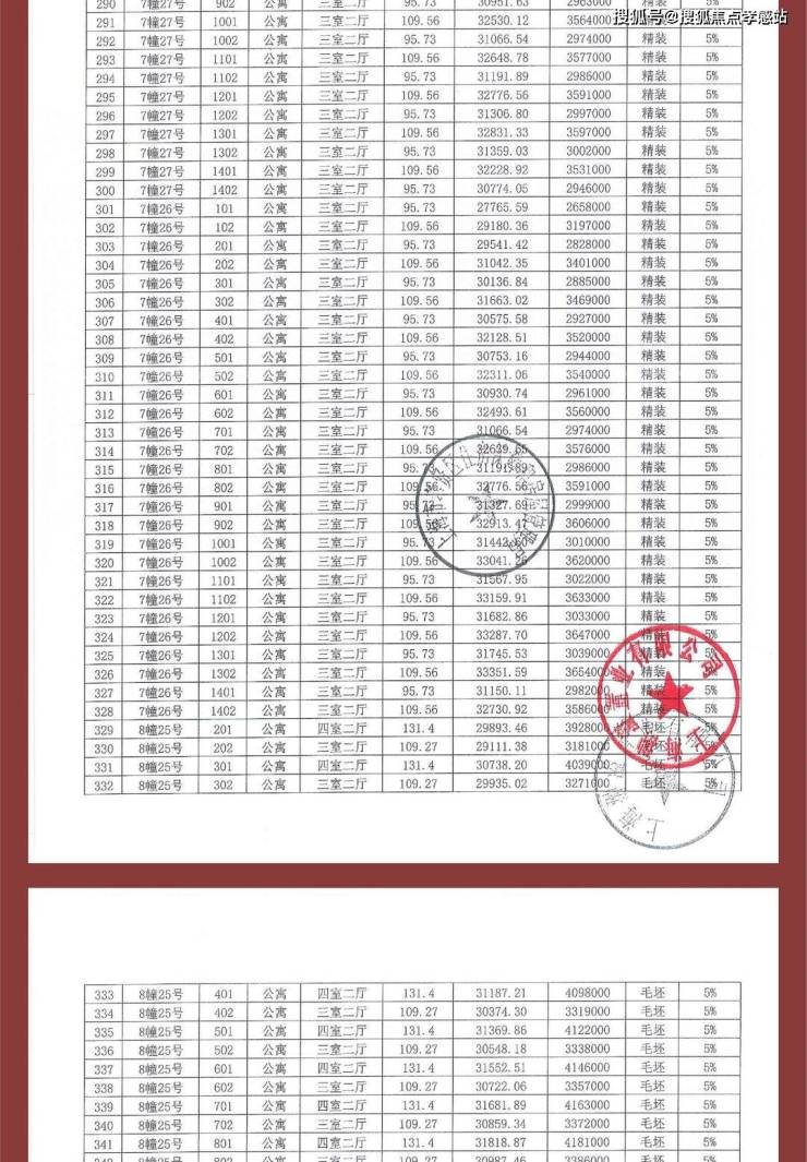 项目一房一价表