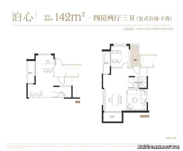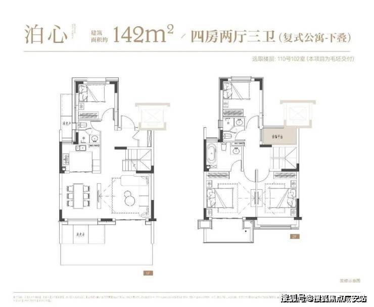 项目叠墅户型有建面约142㎡下叠,建面约139㎡上叠。