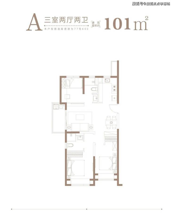 户型解析:三开间朝南+双朝南卧室带飘窗+动静分离+卫生间干湿分离,这样的三房设计,对于上海首套置业购房者来说,非常友好,未来想要做置换,也比较容易出手。